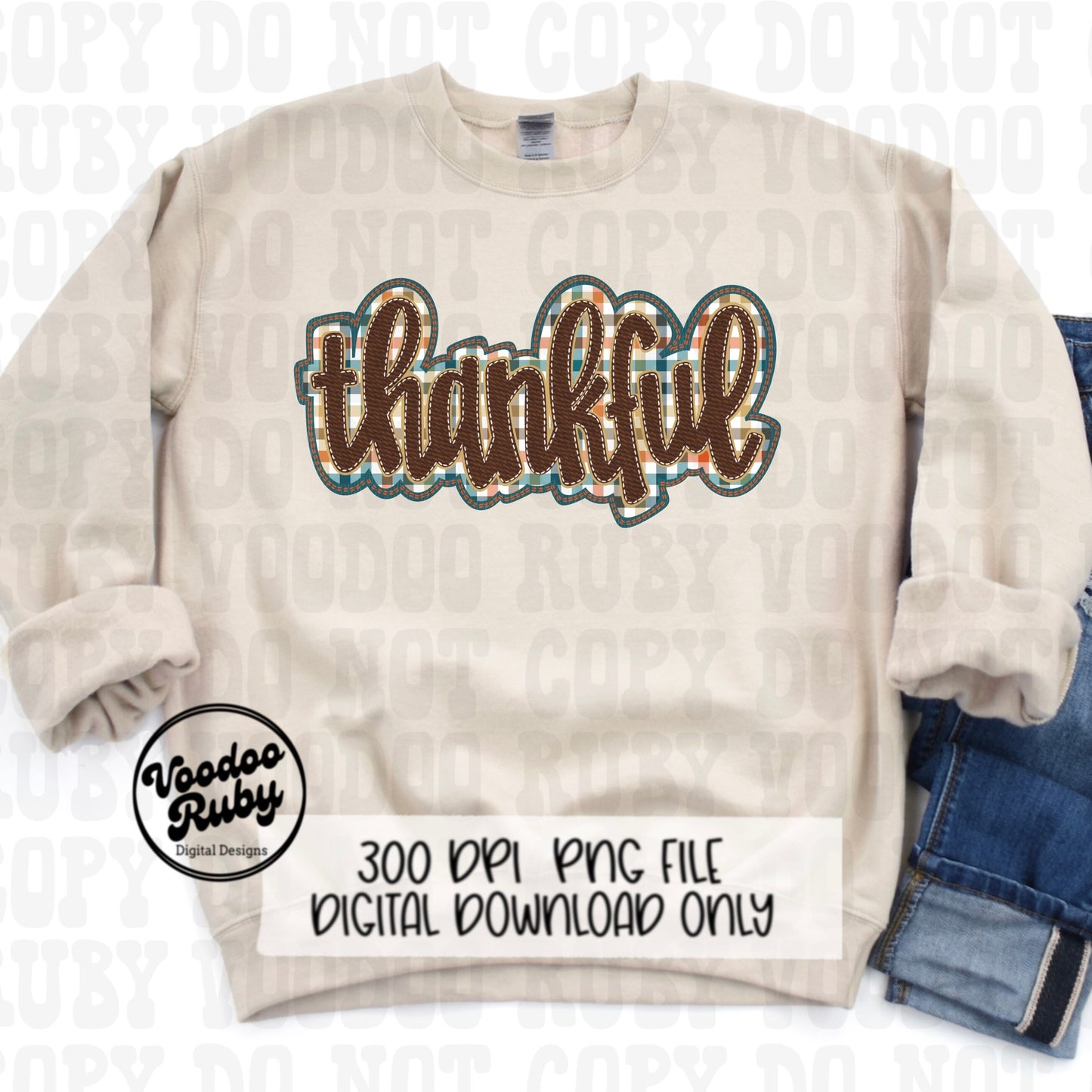 Thankful PNG Design: Faux Applique Thanksgiving (Digital Download)